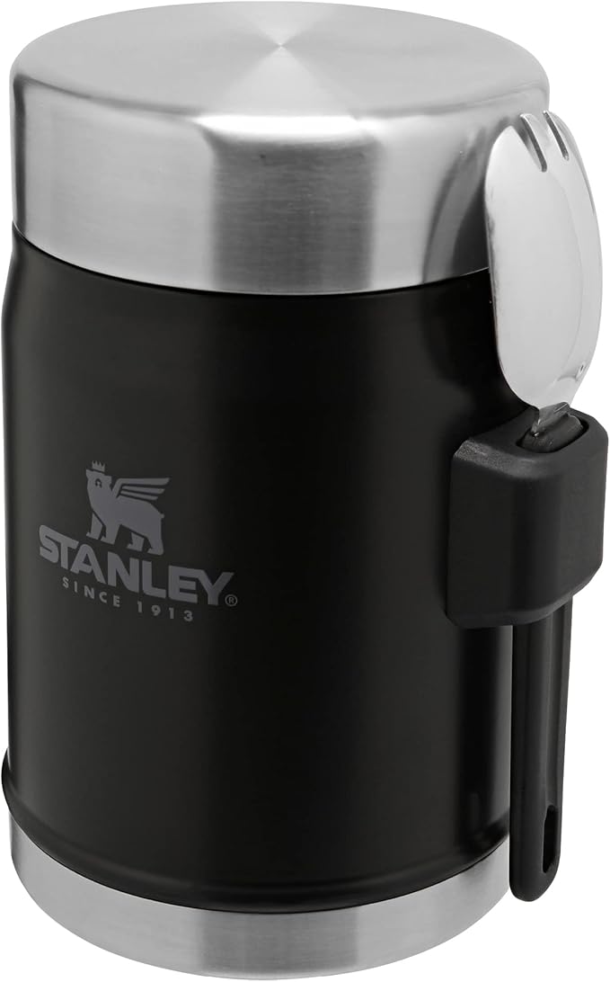KEEPS HOT OR COLD + INTEGRATED SPORK: The compact Stanley food flask with spork keeps food hot or cold for 7 hours. It features a leak-resistant lid with a pressure-release valve for easy opening and a wide mouth for filling, pouring, and cleaning.