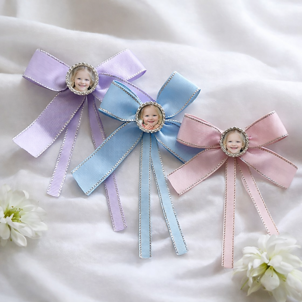 Add a touch of elegance and charm to any hairstyle with our personalised hair ribbons. Crafted from high-quality, durable material, each ribbon is designed to be customised with photos, names, designs, or logos, making it a beautiful and meaningful accessory.