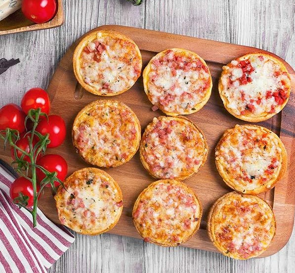 The top has 5 openings for inserting each pizza. Up to 5 mini pizzas can be baked at a time, quickly and easily. Simply place the mini pizzas on the spatulas, put them in the oven and wait a few minutes. In addition, thanks to its non-stick base, the pizzas come out just right, delicious and crispy.